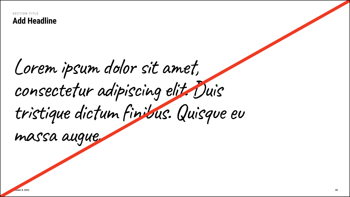 Avoid competing typographic styles and unnecessarily complex or noisy layouts.