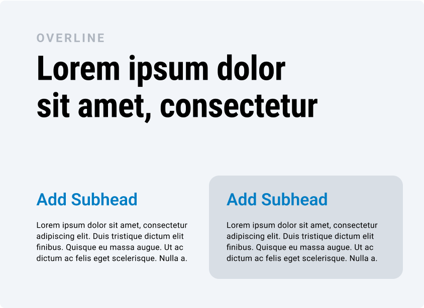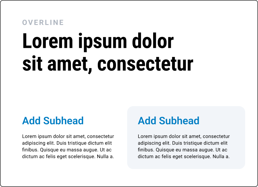 In instances where the content needs don’t suit a specific template, use the tools in the design system to modify or restructure templates.
