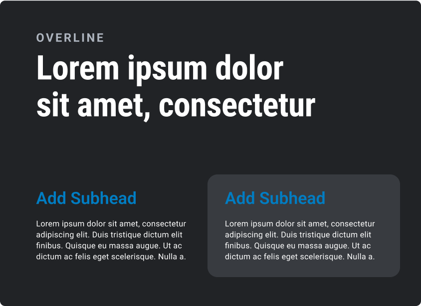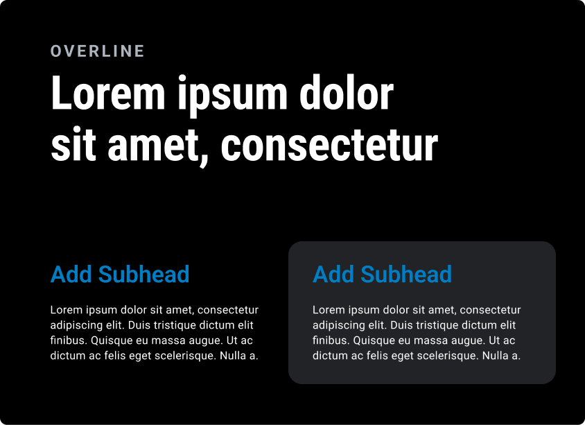 In instances where type needs to be overlaid on images that are too busy, or don’t provide enough contrast, we can use an image overlay or use modules.