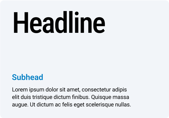 We lead with Roboto Condensed for a bold and confident voice. It is supported by Roboto standard for more legibility at smaller sizes.